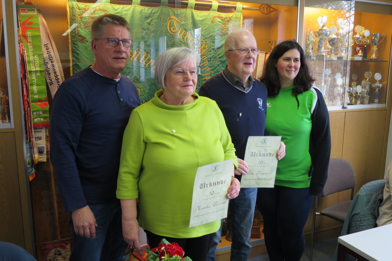 Fichtner (Oberturnwartin TuS Grünewald, das Gesicht des Rhönradturnens in der Region). Schröder erinnerte an die Verdienste der Beiden. Fichtners Tochter Melanie Bayer und zudem Hans-Joachim Pfohl