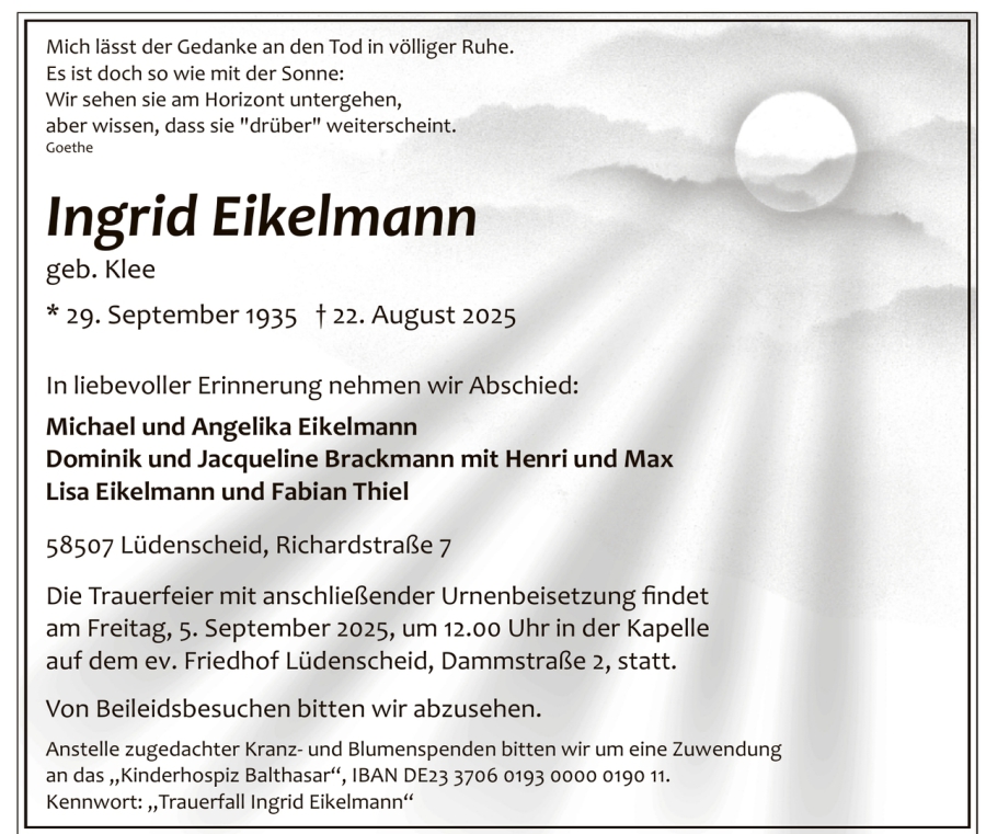 Wir sind unendlich dankbar, dass wir sie bei uns hatten und werden Annette stets ein ehrendes Andenken bewahren.
